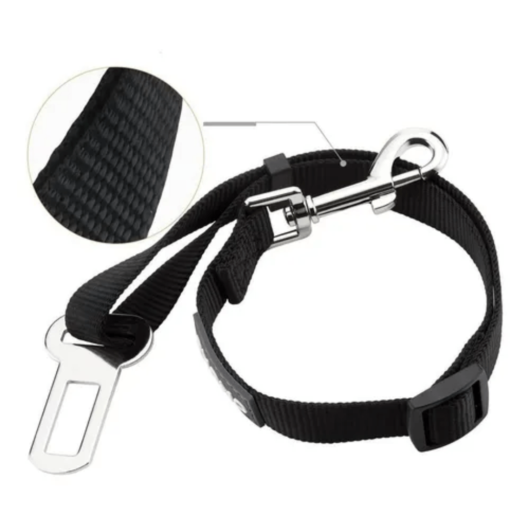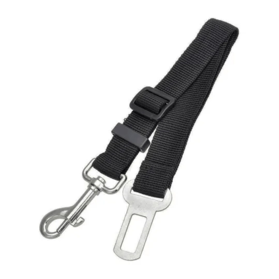 Cinturón de seguridad con mosquetón reforzado que toma la argolla del collar o pretal y el otro extremo se fija al enganche del cinturón del auto, protegiendo a tu mascota de posibles accidentes. Enganche compatible en cualquier modelo de coche. Por un extremo se engancha al cinturón y por el otro al collar de la mascota.