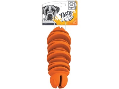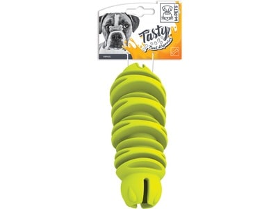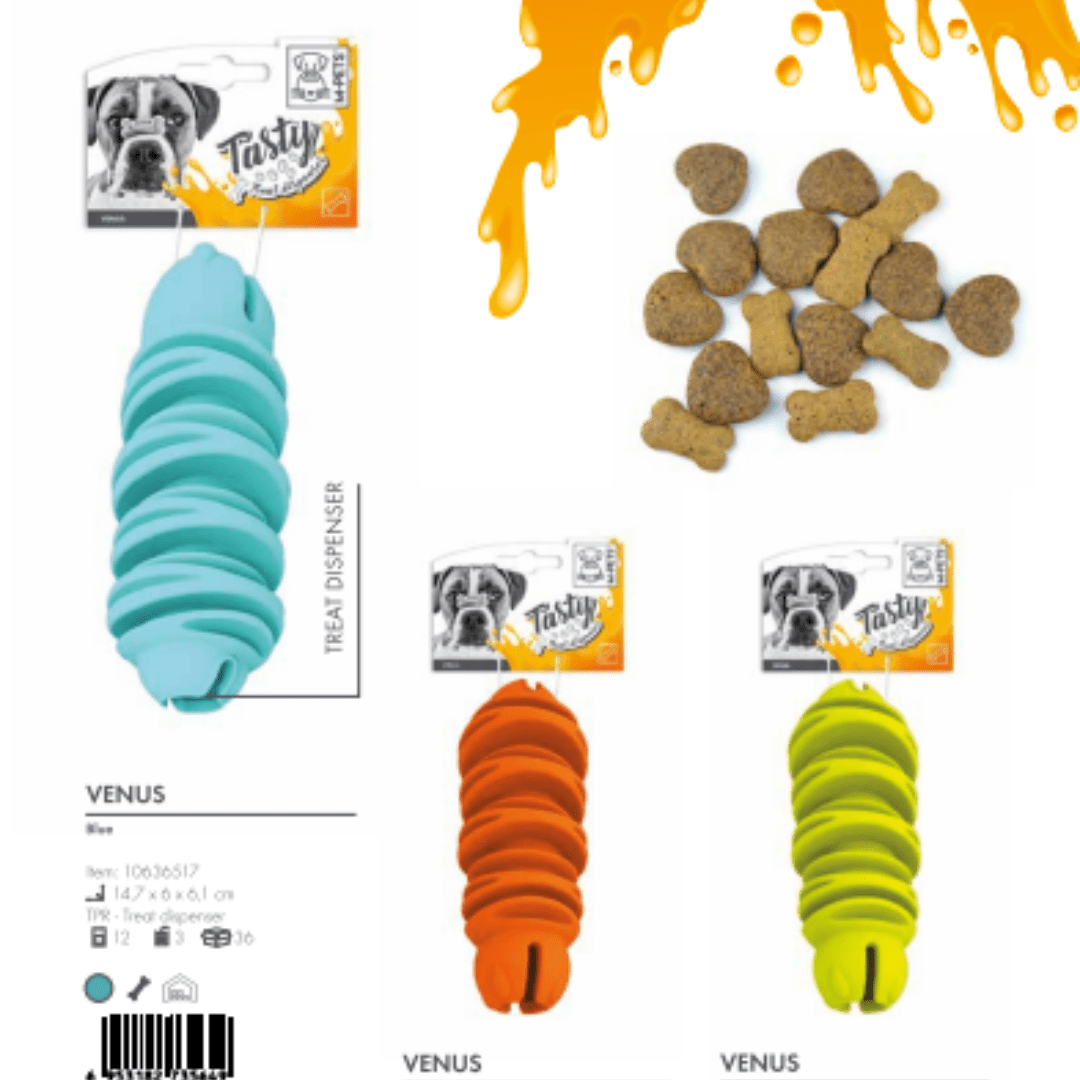 Dispensador de comida GUSANO de goma diseñado para que tu mascota libere stress, especialmente con diferentes espacios de goma que le brindan un suave masaje a sus encías y dificultan el comer controlando ansiedad.